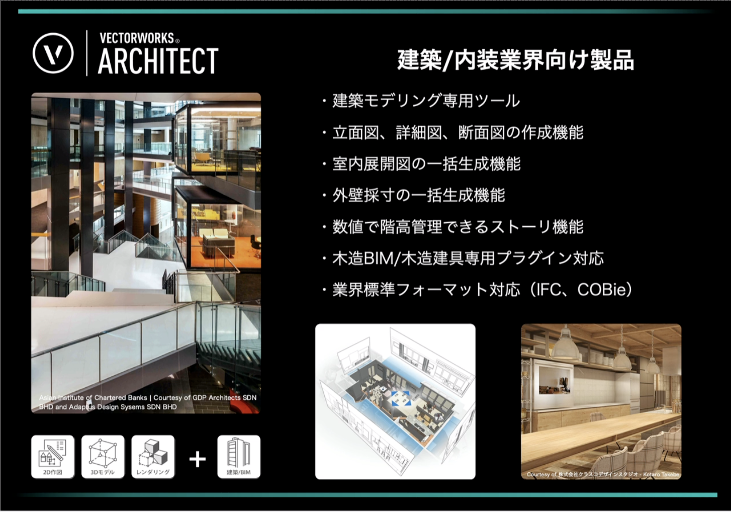 建築/内装業界向け製品、Vectorworks Architectの主な機能と特長がわかる動画です。
