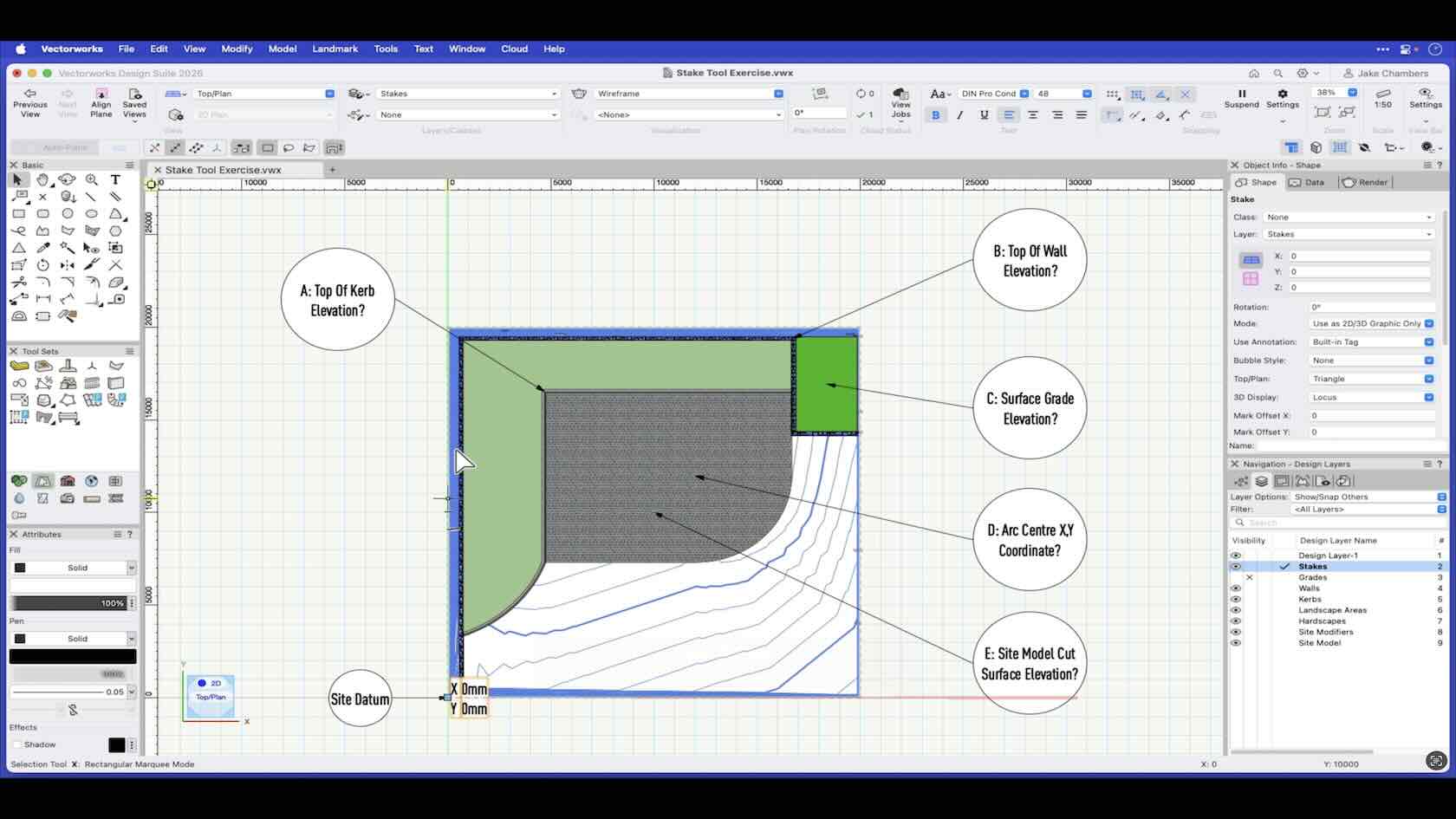 This quiz will give you the chance to check the information you have pulled from the supplied file by placing stakes using the various modes and label references against multiple choice options.